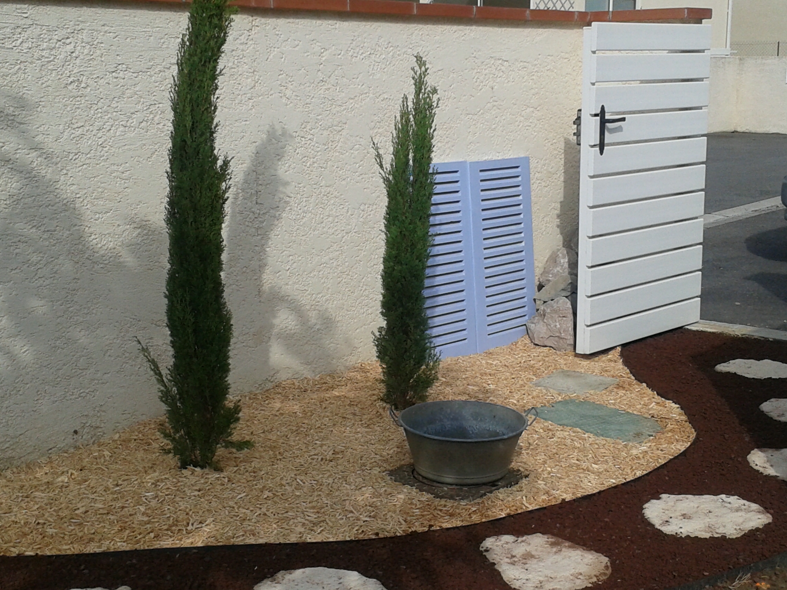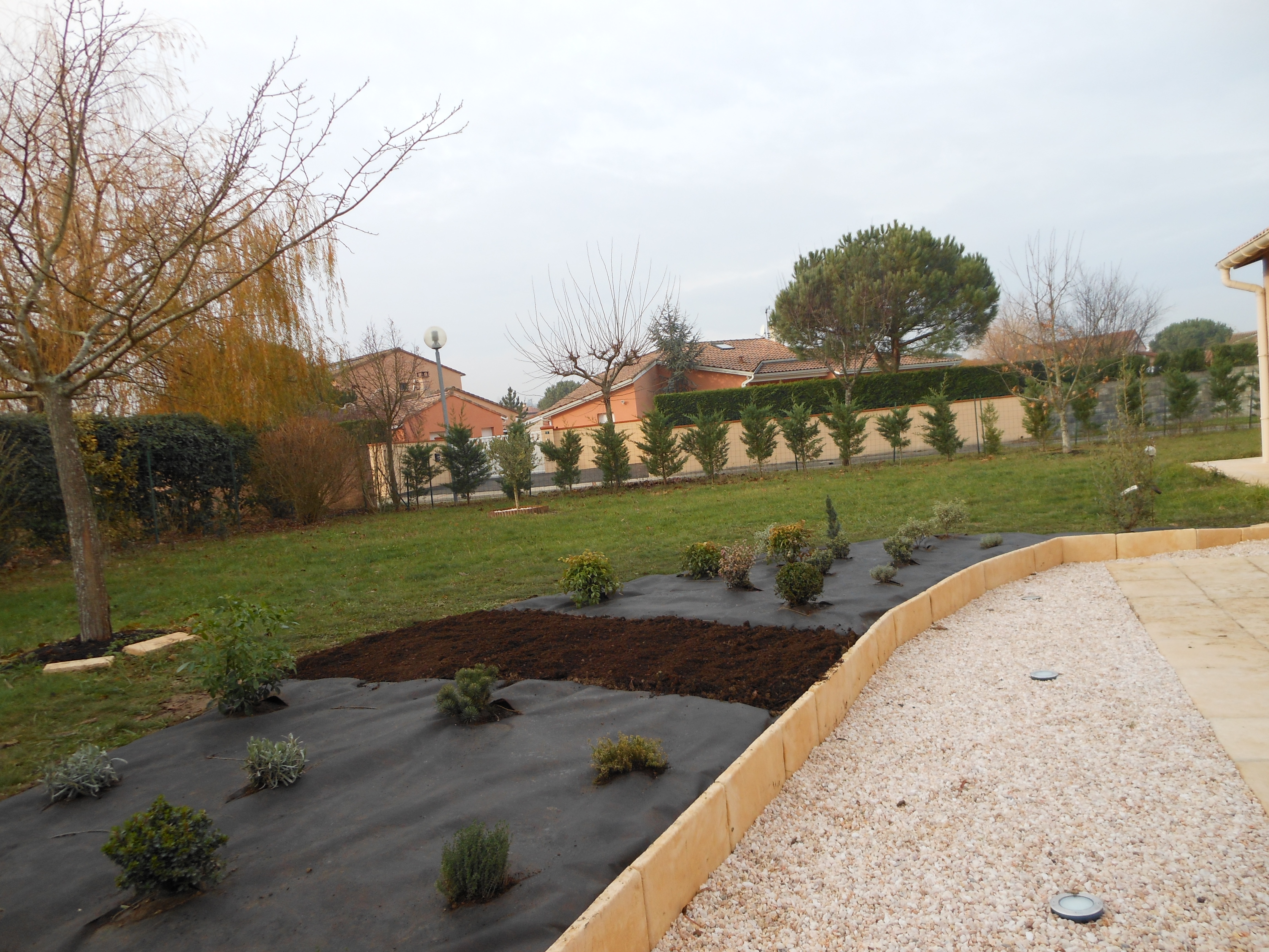 - Tailles : haies, arbres, arbustes, rosiers, évacuations des déchets ou transformation en paillis végétal (B.R.F)